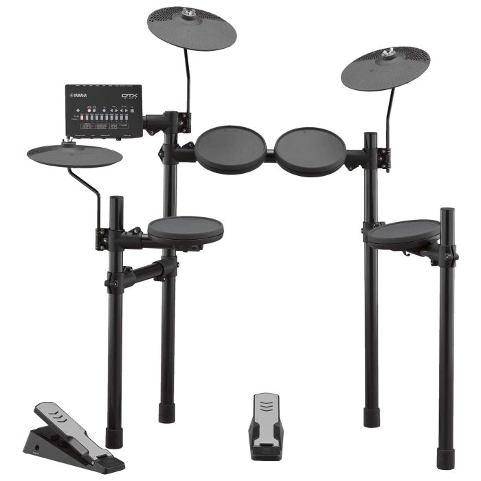 A Bateria Eletrônica DTX402 da Yamaha possui um excelente design e qualidade de som vem com 10 músicas de acompanhamento e 10 funções de treino juntamente com um aplicativo gratuito que torna a prática mais agradável e fornece treinamento musical e ainda conta com um pedal de bumbo virtual silencioso e preciso.