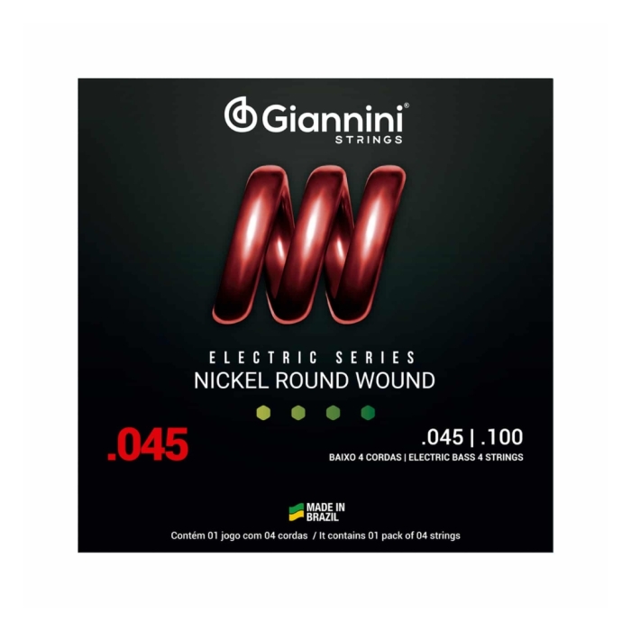 A série Electric traz toda a sonoridade dos encordoamentos Giannini para a sua guitarra e contra-baixo. O encordoamento para baixo 04 cordas Giannini GEEBRL4 é composto de um núcleo de aço revestido por Níquel. O Níquel produz um som brilhante e agressivo que atende uma grande variedades de estilos musicais, sendo bem resistente a oxidação e corrosão.