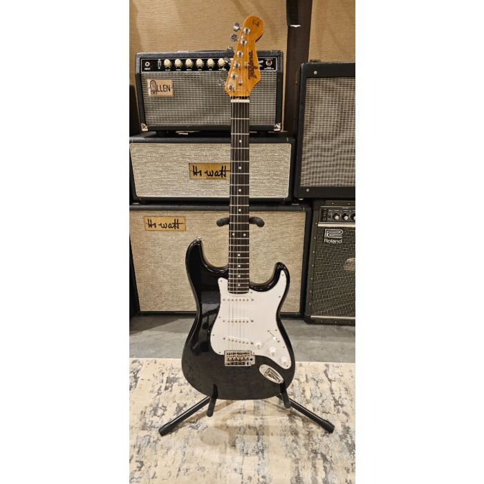 A combinação de cores em preto e branco é um tributo ao design clássico da Stratocaster, que se tornou ícone de gerações de guitarristas. O corpo da guitarra, feito em madeira de alta qualidade, proporciona um som equilibrado, com excelente sustentação e ressonância. Além disso, o braço em maple oferece conforto e agilidade, facilitando a execução de acordes e solos com precisão. A escala em rosewood complementa o design e contribui para uma tocabilidade suave e precisa.