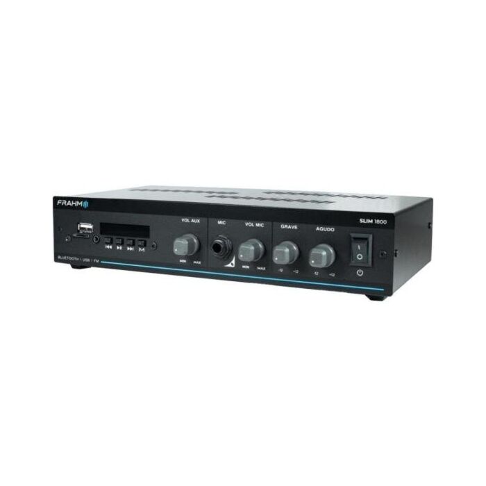 O Amplificador Frahm Slim 1800 G5 é a linha nº1 em amplificadores comerciais do Brasil, agora em sua quinta geração (G5), trazendo ainda mais tecnologia e um visual único. Este é um modelo que oferece potência de 60 Watts RMS, sendo uma escolha versátil para uma variedade de ambientes comerciais, como recepções, clínicas, conveniências, farmácias e lojas.