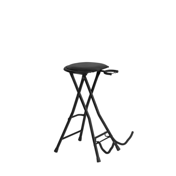 Banco com Apoio e Suporte de Instrumentos para Violonistas On-Stage DT7500: - Aplicação: 2 em 1 - Banquinho e suporte - Altura do banco: 71,1cm - Comprimento do banco: 22,8cm - Altura do descanso de pés: 27,9cm - Peso: 3.4kg - Cor: Preto