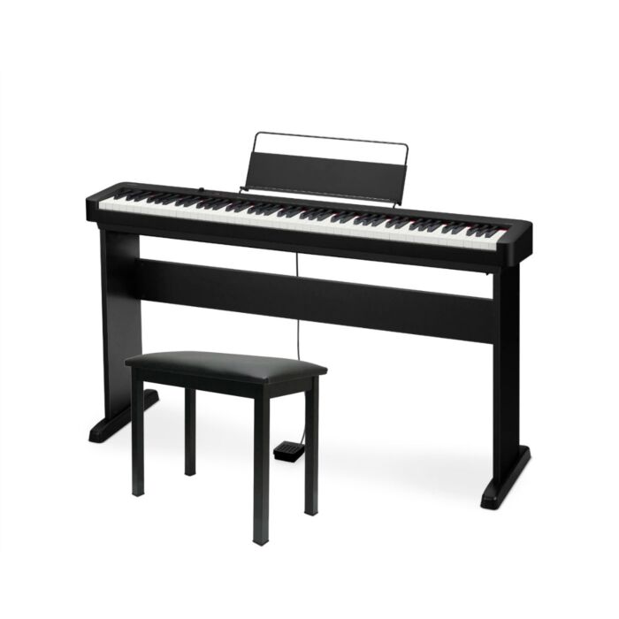 A PERFEITA ENTRADA PARA O MUNDO DAS TECLASO Casio CDP-S105 é uma variação de código do modelo CDP-S100, e conta com as mesmas funções e espeficações. O novo modelo de entrada da série CDP-S inspira com recursos excelentes: nova ação do martelo, nova geração de som, novo sistema de alto-falantes e opção de conexão ao aplicativo Chordana Play for Piano! Além disso, o CDP-S105 é leve e pode ser operado com baterias. Com o suporte CS-46 opcional, o instrumento portátil se transforma em um modelo de móvel atraente.O SOMCasio Teclados · CDP - S100O MODELO DE BASE PERFEITO PARA EXPERIÊNCIA DE TECLADO - INCRIVELMENTE FÁCIL!O novo modelo básico da série CDP-S impressiona com seus recursos: um novo sistema de martelo, um novo processador de som, um novo sistema de alto-falantes e a capacidade de se conectar ao aplicativo Chordana Play for Piano!Além disso, o CDP-S105 é incrivelmente leve e pode funcionar com baterias.Com o suporte CS-46 opcional, o modelo portátil pode ser facilmente convertido em uma ferramenta corporal elegante.Teclado de ação de martelo em escala II10 tonsFonte de alimentação: adaptador AC ou 6 pilhas alcalinas AAAlto-falantes: 8W 8WCorpo CompactoApenas 232mm de profundidadeA CASIO aplicou suas tecnologias de construção altamente compactas para atingir um tamanho ainda menor do que a série CDP anterior. Este piano compacto pode ser tocado em qualquer lugar, no seu próprio estilo.Nuances naturais e um dinâmico som de piano.Com 10 sons integrados de alta qualidade, incluindo piano de cauda. Você pode perceber sutis diferenças no tom ajustando a força com que as teclas são pressionadas. Todo o controle e dinâmica para sua performance e estudo.Scaled Hammer Action Keyboard II com teclas texturizadasPara a nova série CDP-S, a Casio reduziu significativamente o tamanho do mecanismo de ação que simula o peso dos martelos em um piano de cauda. Isso permite um teclado com um toque sensível em um corpo incrivelmente fino. As teclas com texturas de ébano e marfim aumentam ainda mais o conforto ao tocar.Chordana Play For PianoControle de FunçõesConecte seu smartphone ou tablet a um piano digital Casio compatível para controlar várias configurações.Selecione o timbre, reproduza músicas internas e muito mais.Navegação por ícones, para um uso fácil e intuitivo.Controle as funções do piano diretamente do seu dispositivo.Visualizador de Partituras em PDFO visualizador pode exibir as partituras em PDF de 60 músicas na Biblioteca de músicas.Também pode ser usado como um visualizador de arquivos PDF normal.Além das 60 músicas da biblioteca, armazene suas partituras, PDFs e exercícios.Visualização em página dupla lado a lado ou em pagina única na orientação vertical.Com o pedal triplo SP-34 você pode configurar um dos pedais para para virar páginasMIDI PlayerVerifique visualmente a próxima tecla ou teclas a serem tocadas e exiba-as na janela do rolo de piano. Toque no seu próprio ritmo usando os recursos de ajuste de andamento e repetição AB. Acompanhe suas habilidades de melhoria e torne a prática mais divertida com o sistema de pontuação incorporado.Audio PlayerReproduza o áudio no seu dispositivo com ferramentas musicais comotroca de tom e andamento, loop e cancelamento de melodia.