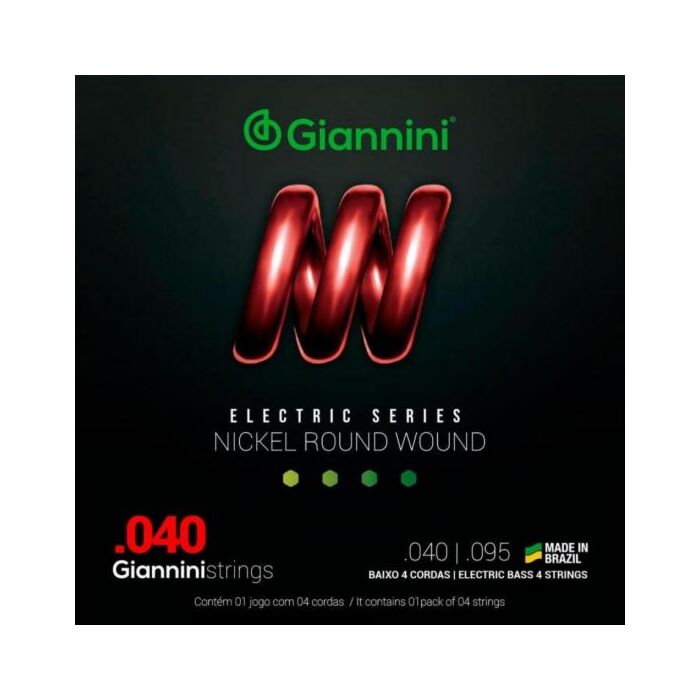 O encordoamento para baixo 04 cordas Giannini GEEBRL é composto de um núcleo de aço revestido por Níquel. Além de produzir som brilhante e agressivo que atende uma grande variedade de estilos musicais, sendo bem resistente a oxidação e corrosão. Aplicação:Contrabaixo