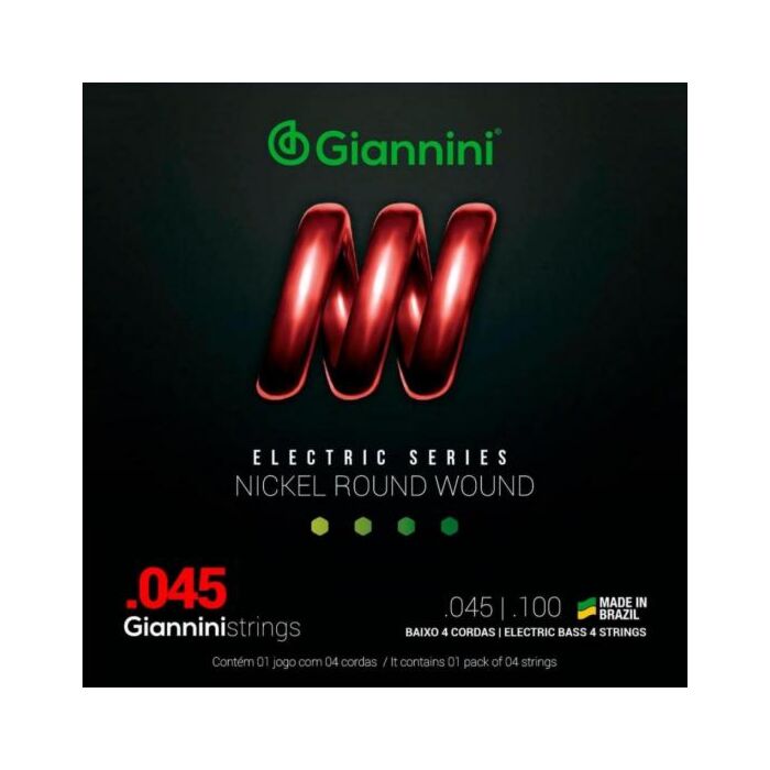 O encordoamento para baixo 04 cordas Giannini GEEBRs é composto de um núcleo de aço revestido por Níquel. O Níquel produz um som brilhante e agressivo que atende uma grande variedade de estilos musicais, sendo bem resistente a oxidação e corrosão. Aplicação:Contrabaixo