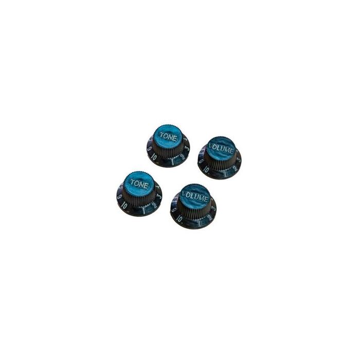 Design: Os knobs possuem um design clássico com acabamento preto e letras brancas, complementando a estética de guitarras Stratocaster.