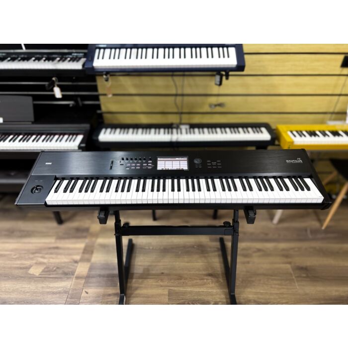 A estação de trabalho conta com uma interface gráfica intuitiva, que facilita o acesso a funcionalidades avançadas, como camadas de som, sequenciamento e modulação. O display sensível ao toque torna a navegação mais prática, permitindo ajustes rápidos durante apresentações ou sessões de gravação. Além disso, o Korg Nautilus AT 88 oferece ampla conectividade, incluindo MIDI e USB, integrando-se facilmente a configurações de estúdio ou palcos.