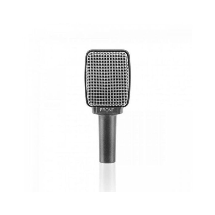 Microfone super cardióide prateado para instrumentos, desenhado para microfonar caixas de guitarra bem próximo à saída. Fornece isolamento de outros sinais do palco. Também é ideal para microfonar baterias, especialmente tons.