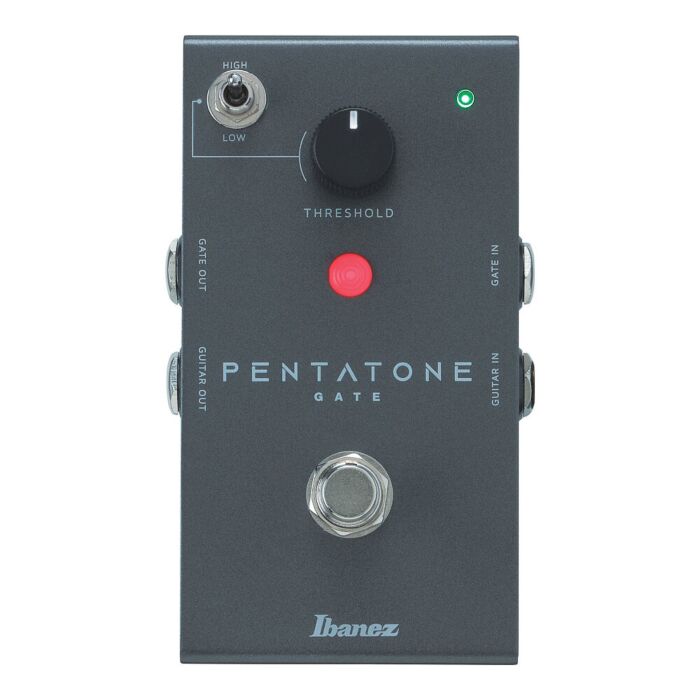 O Pentatone Gate é uma versão standalone da seção GATE do Ibanez Pentatone Preamp. Este gate alcança uma resposta rápida e sustain natural e possui um interruptor de modo de threshold adicional que permite ajustar o limiar na faixa apropriada para redução ou eliminação de ruídos. Além disso, graças às 4 entradas/saídas, o circuito do gate pode funcionar em uma posição adequada, como logo após pedais de distorção ou entre o send/return de um amplificador de guitarra.