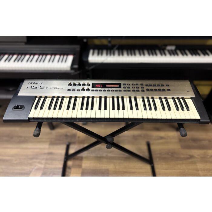 O Roland RS-5 possui 61 teclas sensíveis à velocidade, permitindo uma expressividade única durante a execução musical. Com 16 partes e polifonia máxima de 64 vozes, este teclado oferece uma ampla gama de possibilidades sonoras. Além disso, conta com 512 memórias de tons predefinidos (256 GM2, 256 originais), 128 performances, 20 sets de ritmos (9 GM2, 11 originais) e 128 memórias de tons de usuário.