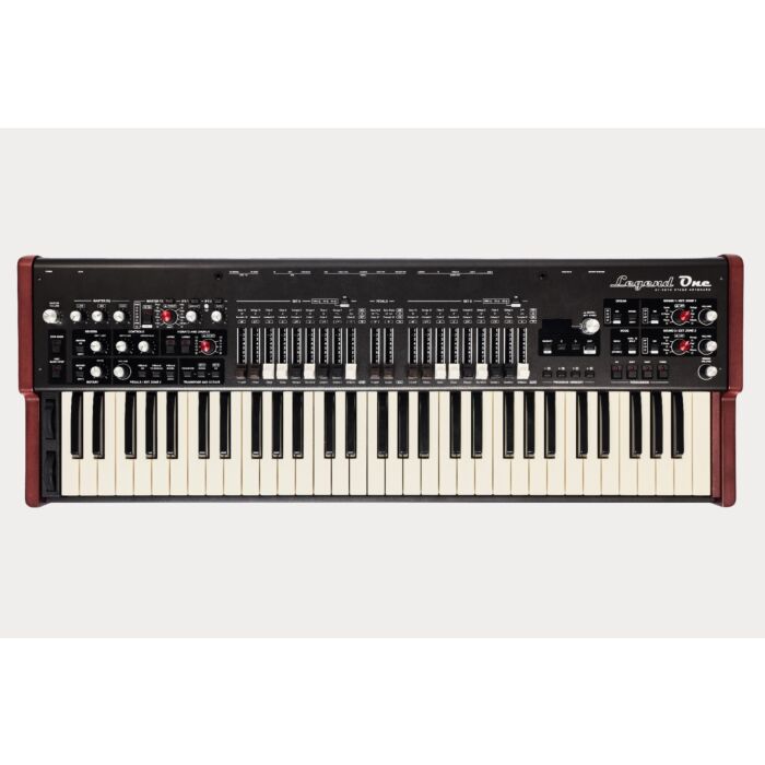 O Legend ONE é construído com materiais de alta qualidade, incluindo madeira sólida e metal, garantindo durabilidade e uma presença estética de alto nível em qualquer palco. Está disponível em duas versões: o Legend ONE 61 com teclado tipo waterfall de 61 teclas e peso de apenas 10 kg, e o Legend ONE 73, com um teclado tipo waterfall semi-pesado de 73 teclas e peso de 11,5 kg. Ambas as versões são projetadas para serem facilmente transportáveis sem comprometer a qualidade do toque ou a resposta das teclas.