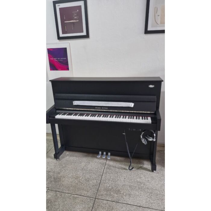 UP118T Pearl River Piano Acústico Vertical com Sistema Intelligent e Silent Ebony Satin com Banqueta| Teclacenter