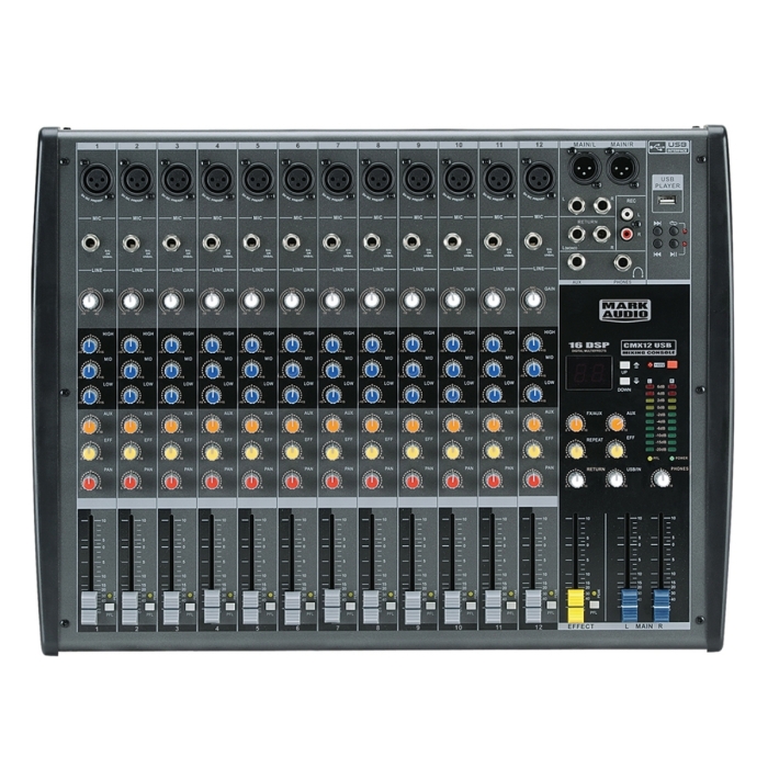 Os mixers da série CMX da Mark Audio foram projetados para as mais diferentes aplicações. Chave para acionamento do monitoramento do nível de sinal do efeito digital. Todos os modelos podem ser utilizados em igrejas, bares, salas de ensaio, etc., com ótimos resultados.