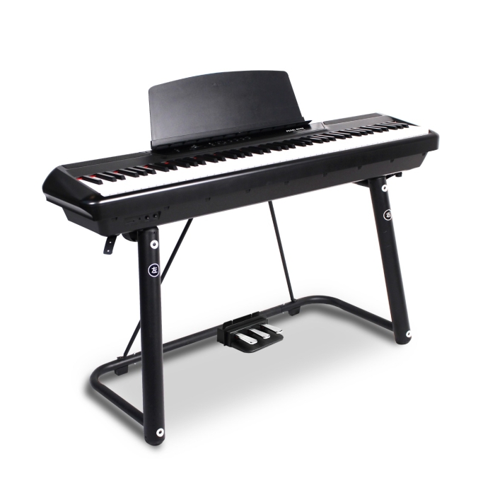 Para maior comodidade e versatilidade, o P60 também vem com uma estante em formato de U e um pedal triplo. A estante em formato de U proporciona um suporte estável para o piano, permitindo que você toque com conforto e segurança. Já o pedal triplo oferece uma maior expressividade ao tocar, permitindo que você controle o sustain, a sordina e a suavidade das notas.