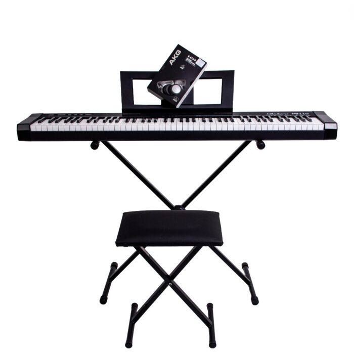 Piano Digital Bulara PB110 88 Teclas Semi-pesadas - Preto-Instrumento + Suporte + banqueta + Fone